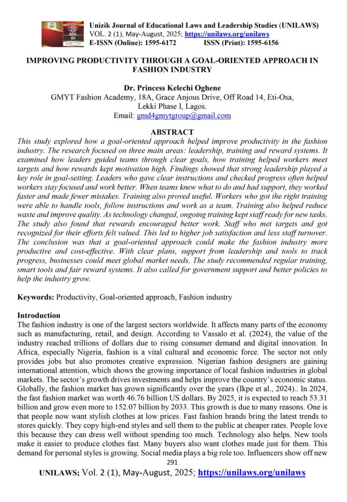 IMPROVING PRODUCTIVITY THROUGH A GOAL-ORIENTED APPROACH IN FASHION INDUSTRY
