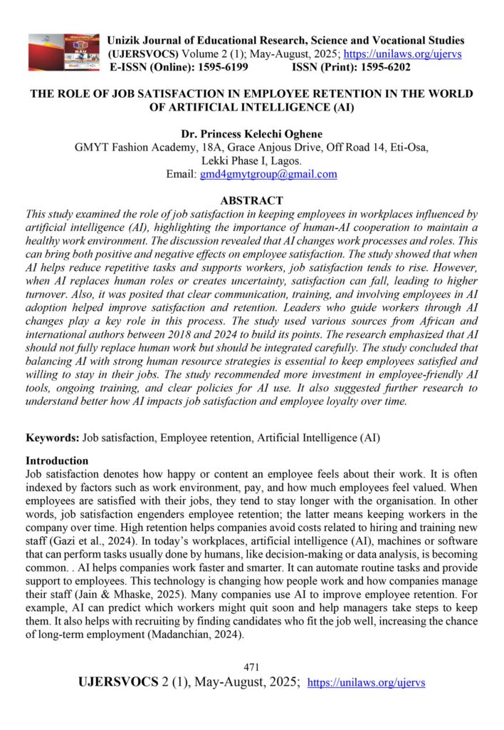 THE ROLE OF JOB SATISFACTION IN EMPLOYEE RETENTION IN THE WORLD OF ARTIFICIAL INTELLIGENCE (AI)