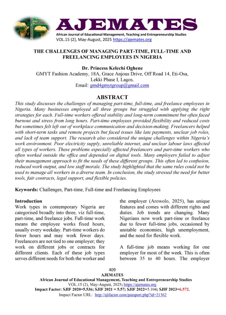 THE CHALLENGES OF MANAGING PART-TIME, FULL-TIME & FREELANCING EMPLOYEES IN NIGERIA