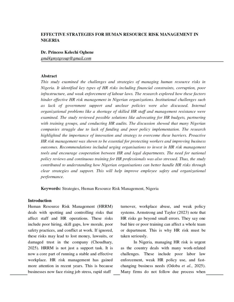 EFFECTIVE STRATEGIES FOR HUMAN RESOURCE RISK MANAGEMENT IN NIGERIA
