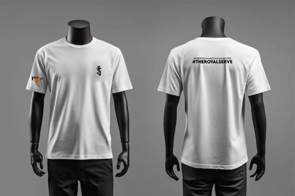 Celebrate The Royal Serve – GAH Elite x Ikoyi Club Tennis Tournament with our limited-edition official tournament T-shirts. Designed with elegance, comfort, and performance in mind, these shirts are perfect for players, fans, and supporters who want to represent the prestige and power of the event.
